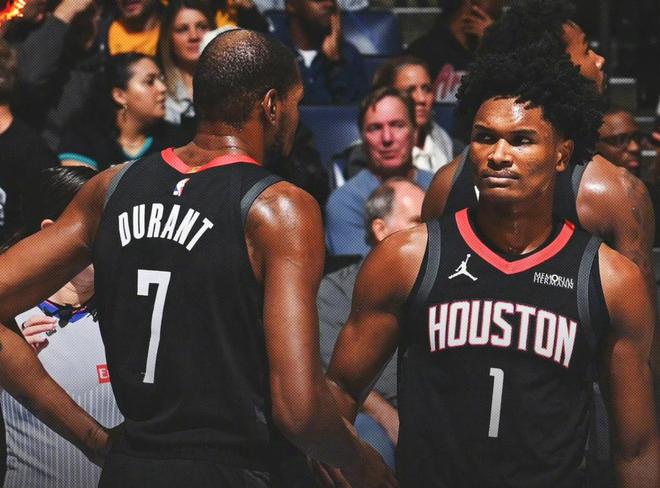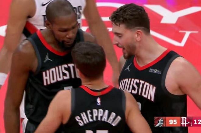 37岁的杜兰特,职业生涯见过无数天才,却在21岁的谢泼德身上看到了当年的斯蒂芬·库里:同样的历史级别投射手感,同样的自信出手,同样的“你防不住我”气场。所以谢泼德被称为白人库里,丰田中心的球迷也再见他喊出那个名字——“Reed Curry!”这就是为什么乌度卡要重用谢泼德的原因,不是他偏心小谢而弃用白魔惠特摩尔,实际上他去奇才还是那个样子,态度决定一切,小谢有白魔没有。赛后杜兰特揽着谢泼德的肩膀走回更衣室,老将与新星的身影交叠,像极了NBA的传承。37岁的杜兰特,仍是联盟最恐怖的得分机器;21岁的谢泼德,已是火箭末节最锋利的匕首。当37岁的死神与21岁的“库里”同场,火箭的上限,早已不只是西部前四